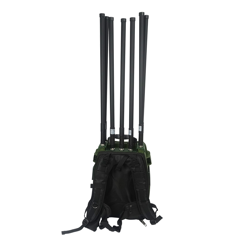 TX-BF05는 내장 재충전 배터리와 DC 전선으로 외부 배터리 사용을위한 개인용으로 Backpack 타입 드론 신호 방해기입니다.